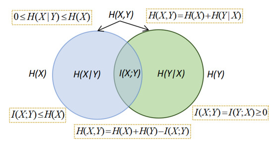 Conditional entropy and mutual information can be thought of in the context of a communication channel or information channel whose output Y depends probabilistically on its input X [9]. They express the uncertainty in the channel output from the sender’s point of view, , and the degree of dependence or information transfer in the channel between variables X and Y, .