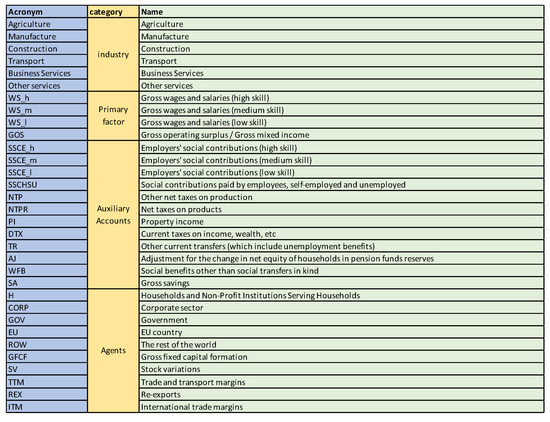 - Alvarez-Martinez, M.T.; Lopez-Cobo, M. Social Accounting Matrices for the EU-27 in 2010; JRC Technical Reports; Publications Office of the European Union: Luxembourg, 2016. [Google Scholar]
