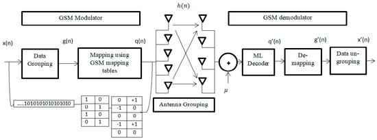 The remainder of the paper is organized as follows. Section 2 presents the GSM system model with a new modification by increasing antenna number and using Quadrature Amplitude Modulation (QAM) modulation. Then, the GSM-STC is presented using two subgroups of antennas and with QAM modulation. The simulation results for the modified GSM and GSM-STC technique are displayed and discussed in Section 3. This is followed by the main conclusions in Section 4, showing the advantages of the proposed system.
