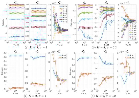- Consistency of the estimators. If the model is perfect and the data are either independent trajectories or a long trajectory from an ergodic measure, the estimators should converge as the data size increases (see e.g., [45,48]). While our parametric model may not be perfect, the estimators should also become less oscillatory as the data size increases, so that the algorithm is robust and can yield similar reduced models from different data sets.