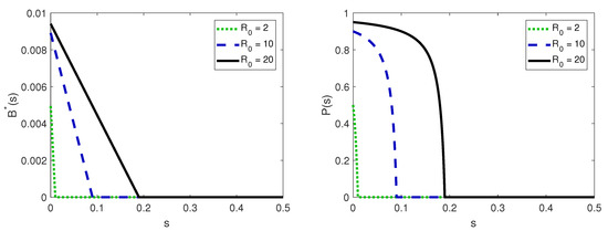 Let denote the probability that an ignorant individual, who does not search for real information, becomes a believer for a proportion s of individuals in the population who search for information. The probability uses the stable stationary states of ignorant and believer individuals computed in Lemma 1: