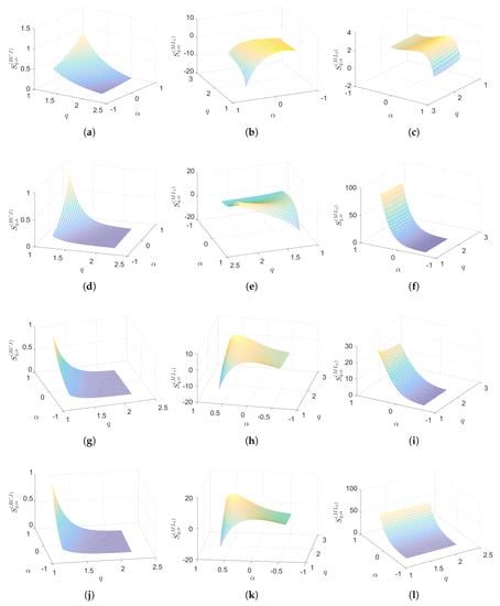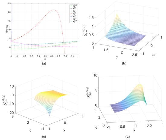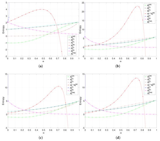 Different combinations of the parameters yield distinct entropy formulations []. For example, if we set , then we recover the Tsallis entropy, while for , , we obtain the Shannon entropy.