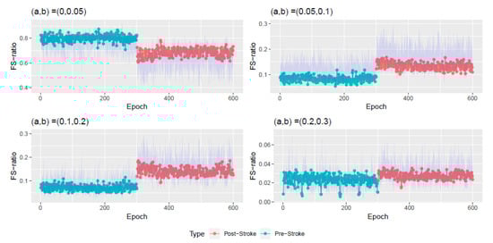 Numerical summaries of FS-ratio statistic for post stroke epochs .
