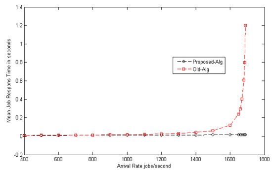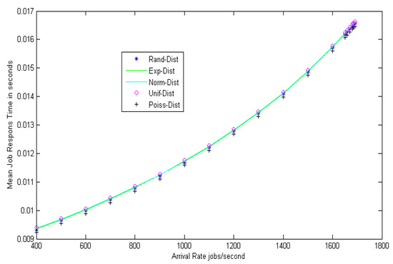 Figure 5 shows the improvement ratio of the suggested model as a function of the arrival rates. The suggested model improves the load balance by 98% from a configuration with an arrival rate of 400 jobs/s to a configuration with an arrival rate of 1690 jobs/s in the different distributions.