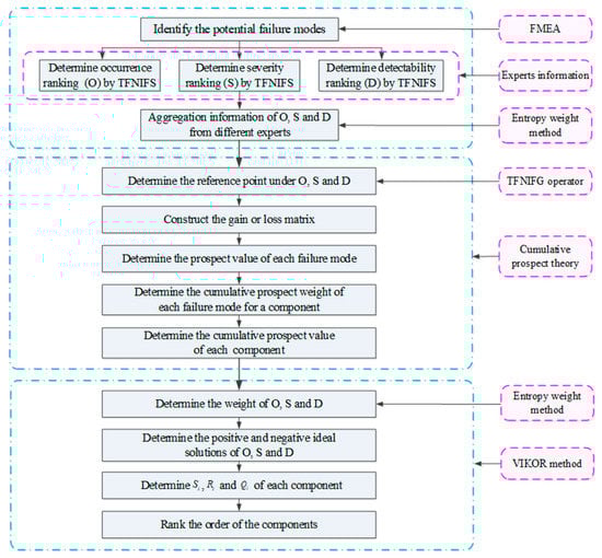 The risk prioritization in FMEA model can be treated as a MCDM problem, and the risk factor O, S and D can be regarded as a group of decision criteria. As a result, the procedure of resolving this FMEA problem can be considered as a process of risk prioritization where uncertainty and FMEA team members’ preference and psychological behavior are both taken into account. The general steps for this proposed FMEA model can be illustrated as Figure 1 and the systematic procedures can be briefly introduced as follows.