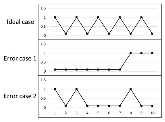 A hypothetical ideal case and two error cases are shown in Figure 5. The entropy results calculated in the two error cases of Figure 5 are equal, as shown in Table 2. However, the position distributions of the points in two error cases are totally different.