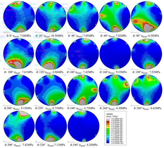 The SED nephograms of the error models are shown in Figure 18. For the convenience of comparison, the scales of the cloud charts are unified, and the maximum stress is marked in each chart.