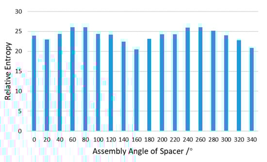 The relative entropy results in Figure 20 show a regular pattern with the changing of assembly angle. At 160° and 340° the relative entropy reaches the lowest point, and their angle difference is 180°. At 60° and 240° the relative entropy reaches the highest point, and their angles difference is also 180°. The morphology of error surfaces A and B may relate to this. In Figure 16, it can be clearly seen that the spacer and the threaded ring presents a “saddle” type. With the rotation of the spacer, the matching of the high point and low point of the error surface A and B changes, resulting in the regular change of the SED distribution of the lens.
