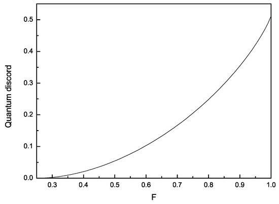 The variation of quantum discord with F for = 0.3, = 0.6, and = 0.8.