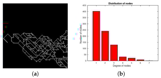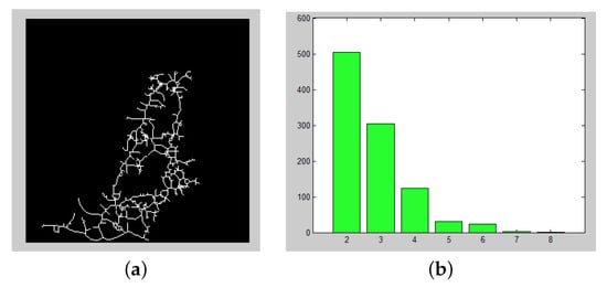 (a) Example of the Binary skeletonized form for patient B. (b) Degree distribution obtained from patient B.