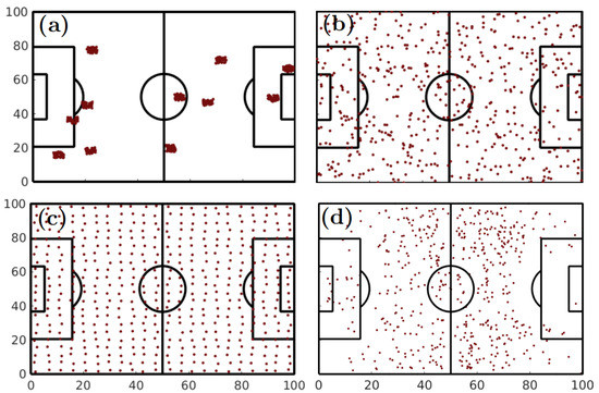 - Narizuka, T.; Yamamoto, K.; Yamazaki, Y. Statistical properties of position-dependent ball-passing networks in football games. Physica A 2014, 412, 157–168. [Google Scholar] [CrossRef]