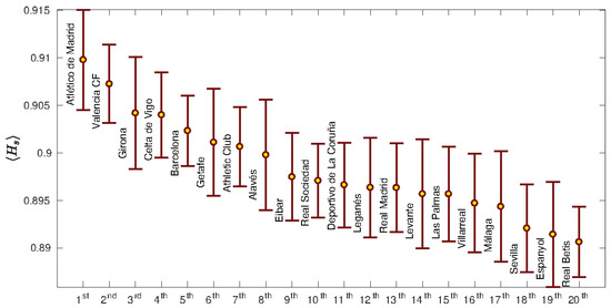 APA StyleMartínez, J. H., Garrido, D., Herrera-Diestra, J. L., Busquets, J., Sevilla-Escoboza, R., & Buldú, J. M. (2020). Spatial and Temporal Entropies in the Spanish Football League: A Network Science Perspective. Entropy, 22(2), 172. https://doi.org/10.3390/e22020172
