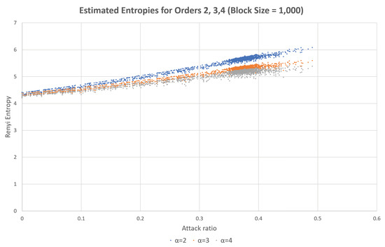 - Kim, Y.-S. Low Complexity Estimation Method of Rényi Entropy for Ergodic Sources. Entropy 2018, 20, 657. [Google Scholar] [CrossRef]
