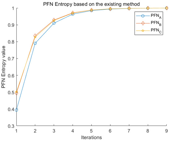 Peng proposed a new PFN entropy based on inclusion measures and applied it in the medical field [68]. The new PFN entropy calculation approach to converting inclusion measure (I) to similarity measure (S). Finally, PFN entropy (E) is derived: