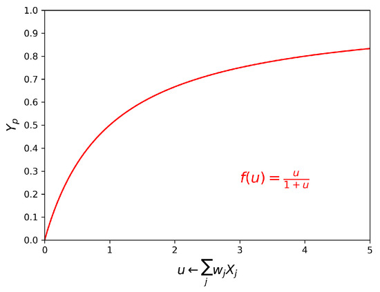 Referring to the case of steady-state dynamics, straight-forward calculations yield that the concentration of active Y is non-linearly proportional to the weighted sum of the inputs , as depicted in Figure 4: