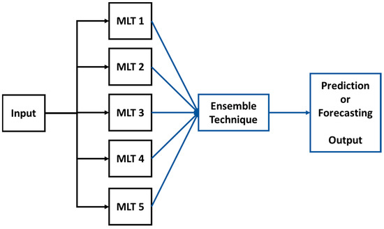 Diagram of the Ensemble Methodology that uses five different machine learning techniques (MLTs).