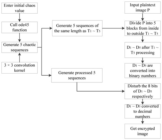 where is the value that starts from the 250th value of the chaotic sequence . Use to convert the fetched values into an matrix, and then multiply each element value of the matrix by