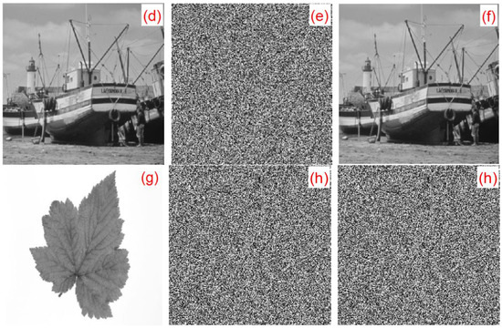where is the probability of and is the total number of . For grayscale images, the theoretical maximum value of information entropy is 8. The closer the image information entropy is to the theoretical maximum, the more random the image pixel gray value distribution is. The information entropy before and after the encryption of Lena, baboon, boat, peppers, couple, and leaf is shown in Table 4. The simulation results show that the pixel value distribution of the encrypted image was very uniform, and the algorithm had a good encryption effect.