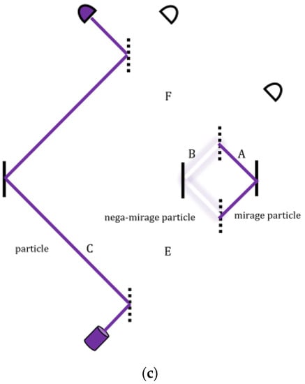 Even more intriguing is the mechanism by which this prediction has been derived. As shown straightforwardly in [], the combination of the two state-vectors gives a negative value for the counter-particle along the middle-right segment of its past path, within the smaller MZI (Figure 2). If we choose to trust the mathematics and assign this minus sign to the counter-particle, then this sign turns out to effectively describe the particle’s potential interactions with other test particles, i.e., it pertains to the particle’s very presence.
