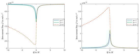 It follows from [] that, for small values of Q, applying , zero-potential current , and zero-potential fluxes (in dimensionless forms as mentioned in Remark 2) are