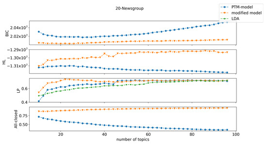 Additionally, n is the number of data points (documents) in the dataset and K is the number of free parameters in the model.