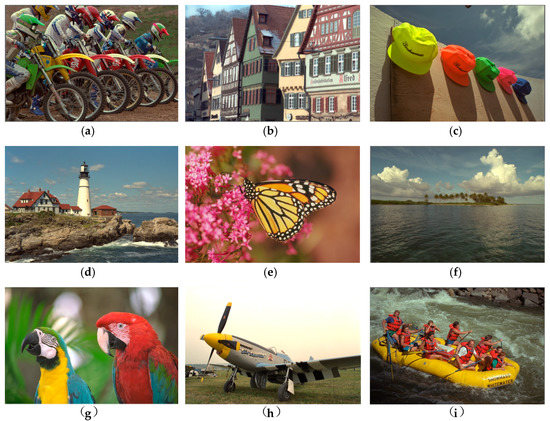 Some examples of reference scenes in the LIVE database. (a–i) shows some examples of reference scenes in the LIVE database, including “bikes scene”, “buildings scene”, “caps scene”, “lighthouse2 scene”, “monarch scene”, “ocean scene”, “parrots scene”, “plane scene” and “rapids scene” (not listed one by one due to layout reasons).
