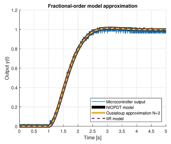 Measured microcontroller outputs with fractional-order (ORA) models.