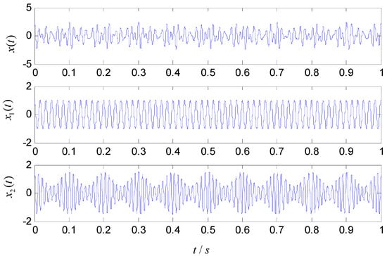 A simulation signal is used to verify the effectiveness and superiority of the ASNBD technique. includes a cosine signal and an amplitude-modulated and frequency- modulated (AM–FM) signal . The time domain waveforms of and its components are shown in Figure 2 and is written as shown below.