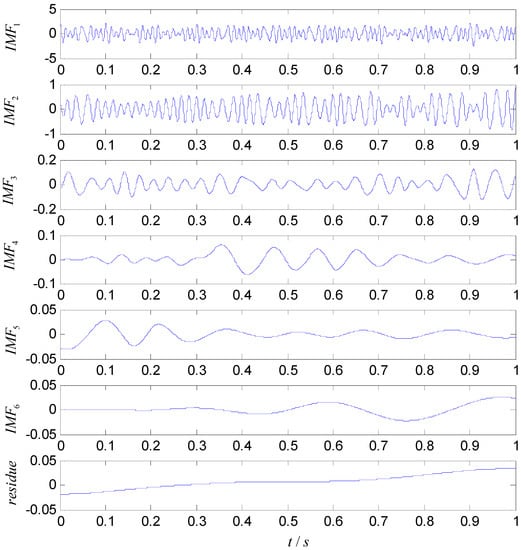 From the above process, it can be seen that the ASTFA does not depend on the distribution of extreme points. Hence, it can inhibit some deficiency caused by the fitting processing of extreme points in EMD. Moreover, the ASTFA algorithm has a solid mathematical foundation. In the literature, the Gauss–Newton algorithm was adopted to solve the optimization problem P1 to search for the sparest represent components in the literature []. However, Gauss–Newton algorithm highly depends on the initial values. If the initial values deviate too far from the real values, the solution often diverges after iteration and the inaccurate components may appear.