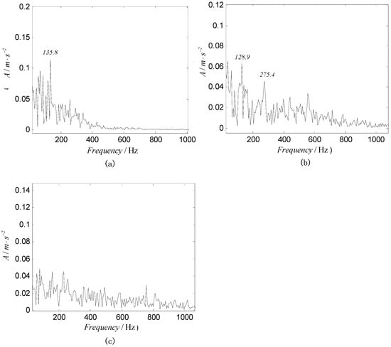 Envelop spectrums for the first component of BF signal via different methods (a) ASNBD, (b) ASTFA, and (c) CEEMD.