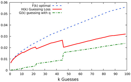 Consider the minimum size of the gap between two distinct adjacent probabilities of p:where we take if . Lemma 1. Suppose is a sample of size n drawn from the distribution p. A lower bound on the probability of zero loss can be given by Proof. Consider probability distributions q, where . Note that, for the two passwords w and , if we had , then , as the difference between and must have been at least , but , and likewise for . Thus, orders passwords of differing p probability in the same order as p.
