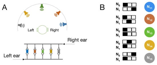 - Jeffress, L.A. A place theory of sound localization. J. Comp. Physiol. Psychol. 1948, 41, 35. [Google Scholar] [CrossRef]
