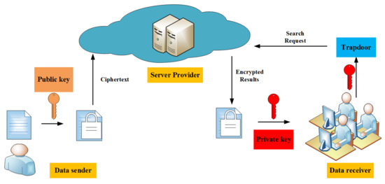Boneh et al. [20] proposed the framework of PEKS based on public key infrastructure using bilinear pairing. Each user in this scheme can be allowed to create searchable content with the receiver’s public key, but only the private key holder can generate a keyword trapdoor to query. Their scheme needs a secure channel to transform the search trapdoor; however, it is expensive to build the secure channel. Baek et al. [25] proposed a PEKS scheme removed the limit for a secure channel. Their construction requires a server public key and private key, and only the server chosen by the sender can search. It was proved security in the random oracle model under the BDH problems. Next, Rhee et al. [27] proposed a new PEKS scheme based on PKI, which enhanced Baek’s model [25] and allowed an attacker to obtain the relation between ciphertexts and a trapdoor.