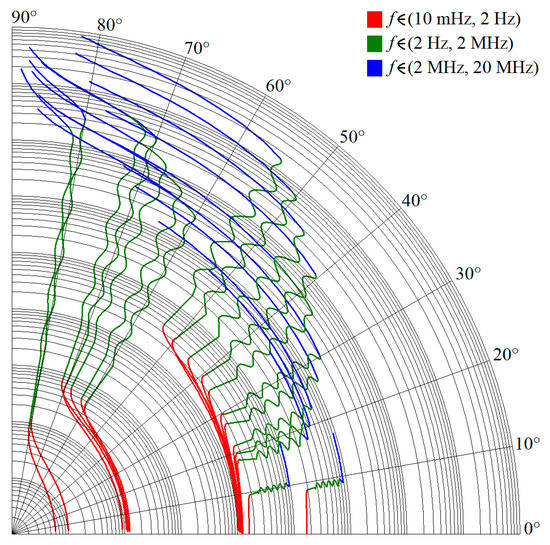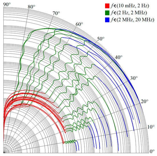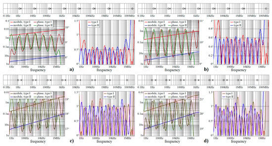 This CPE has a start-up frequency f0 = 1/(2πR0C0) = 1/(2π·105·10−6) = 1.6 Hz and utilize impedance constant 103. Optimal values of resistors and capacitors associated with Figure 1a,b can be found within Table 1 and Table 2. Pseudo-capacitance is about 1.5 mF/s9/10 and 1.83 μF/s9/10 for Types I and II RC circuit, respectively.