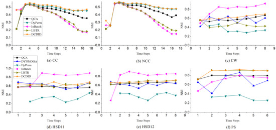 - Effective Dynamic Community Detection: We propose an information dynamics-based framework, which employs the batch processing technique to incrementally uncover community structures in dynamic networks. In addition, we develop a dynamic community detection method DCDID for revealing the communities by simulating the exchange of information between nodes in each time slice of dynamic networks. The DCDID method provides a natural manner to uncover community structure and obtains high-quality communities in each time slice (cf. Figures 7–12).