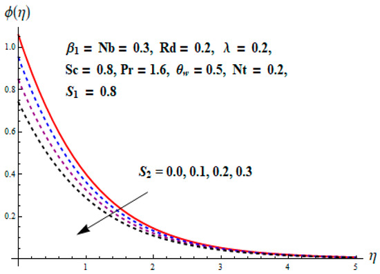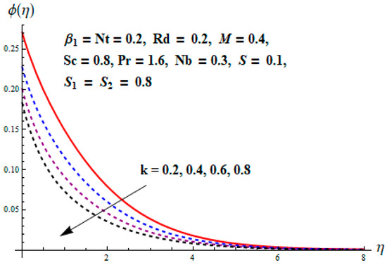 - Concentration profile declines for the large estimates of the chemical reaction parameter.