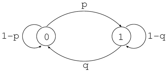 - Gilbert, E.N. Capacity of burst-noise for codes on burst-noise channels. Bell Syst. Tech. J. 1960, 39, 1253–1265. [Google Scholar] [CrossRef]