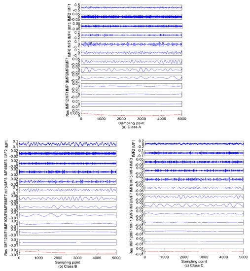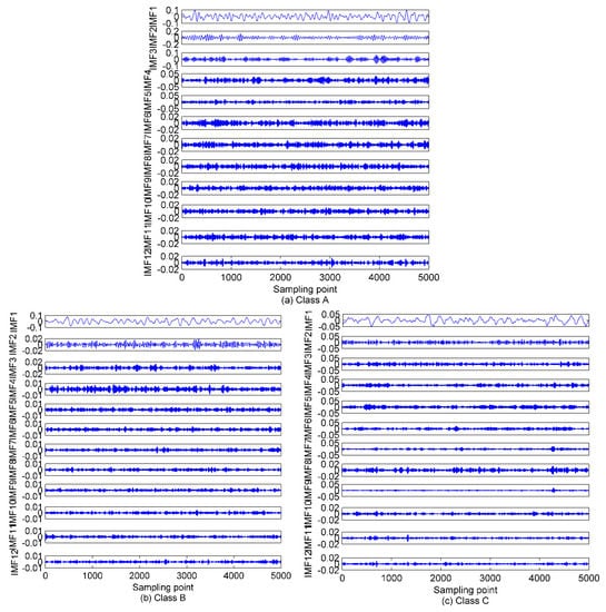 The EEMD of the SRN signals. (a) Class A; (b) Class B; (c) Class C.