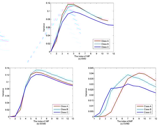The EVMD of the SRN signals. (a) Class A; (b) Class B; (c) Class C.