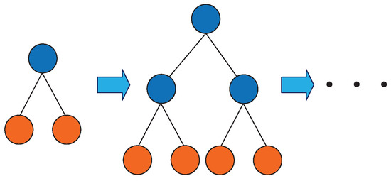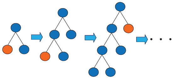 The vibration signal of the high voltage circuit breaker has a high time and space complexity. In the process of fault diagnosis, it should be used as short as possible to achieve a good classification effect. Moreover, overfitting should be avoided. In the Boosting method, the growth strategy of the decision tree directly affects the accuracy and efficiency of classification. The traditional Boosting method uses the Level-wise decision tree growth strategy as shown in Figure 6. It splits all leaves every time, but it wastes computing time and memory consumption to split the leaves with a low Splitting gain. LightGBM uses the Leaf-wise strategy with depth limitation as shown in Figure 7. It searches all the current leaves each time to find the leaf with the largest Splitting gain for Splitting. Compared with Level-wise, Leaf-wise can effectively reduce the calculation time, reduce the error, and improve the accuracy under the same Splitting times. However, it is easy to build a deep decision tree with a Leaf-wise growth strategy, resulting in overfitting. Therefore, LightGBM adds a maximum depth limit on Leaf-wise to ensure high efficiency and precision while preventing overfitting.