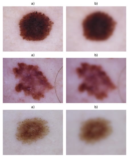 - Codella, N.; Rotemberg, V.; Tschandl, P.; Celebi, M.E.; Dusza, S.; Gutman, D.; Helba, B.; Kalloo, A.; Liopyris, K.; Marchetti, M.; et al. Skin Lesion Analysis Toward Melanoma Detection 2018: A Challenge Hosted by the International Skin Imaging Collaboration (ISIC). arXiv 2018, arXiv:1902.03368. [Google Scholar]