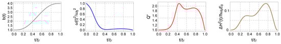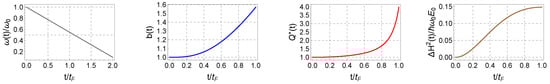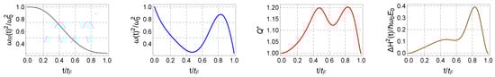 With the boundary conditions, and , we choose the interpolating ansatz . It is then guaranteed that and , so the local counterdiabatic protocol still interpolates between the same initial and final frequencies considered in the reference protocol . Using Equations (69) and (70), the nonadiabatic factor (18) reads in this case