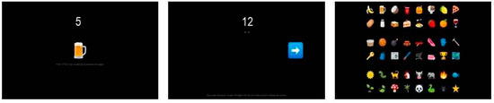 For this test, 16 images were presented on the screen in a similar 4 × 4 grid, and the procedure was the same as for test 4, except that the pool of 48 images was available on a separate screen, accessed by clicking on an arrow (see Figure 5)).