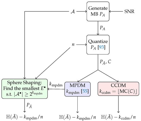 - Pikus, M.; Xu, W. Arithmetic coding based multi-composition codes for bit-level distribution matching. In Proceedings of the IEEE Wireless Communications and Networking Conference (WCNC), Marrakesh, Morocco, 15–18 April 2019. [Google Scholar]