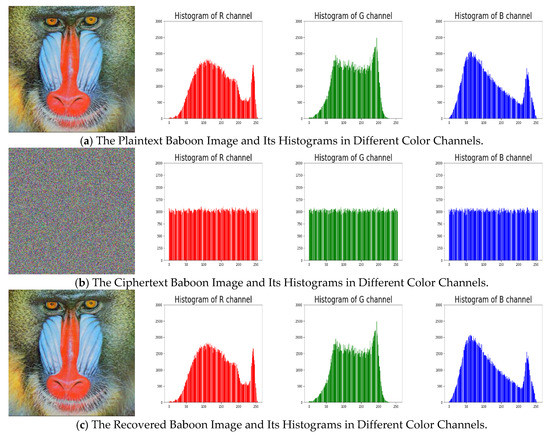 The Original/Encrypted/Recovered Baboon Images and the Corresponding Histograms in Different Color Channels.