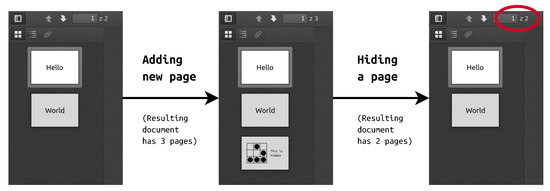 The whole page(s) of PDF document may be hidden by modifying the tree structure of objects. The one idea is to remove reference to a certain page from its parent and to decrease the counter of pages. The content of the object remains untouched; only the reference is deleted. Let us consider the following example: