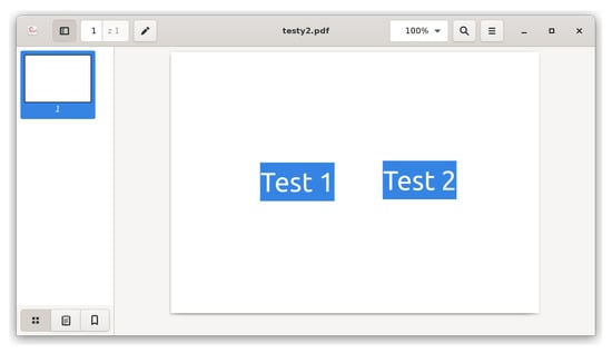 The new document was tested to see if it opens correctly and the number of pages was as expected. The tests included PDF readers that parse and show documents directly and also graphical software with ability to import PDF as raster or vector image. They were: Evince, Adobe Acrobat X, Okular, Firefox (web browser that may internally render PDFs)—group 1; GIMP, Inkscape and Draw from LibreOffice—group 2.