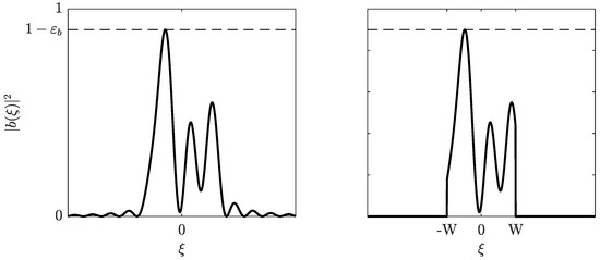 The set of for which the Fourier transform is non-zero thus satisfies , where “supp” is short for support. Then, [34] [Theorem 4] tells us that so that Equation (21) is indeed fulfilled. Theorem 2 now tells us that the b-modulator is bounded in transmit power.