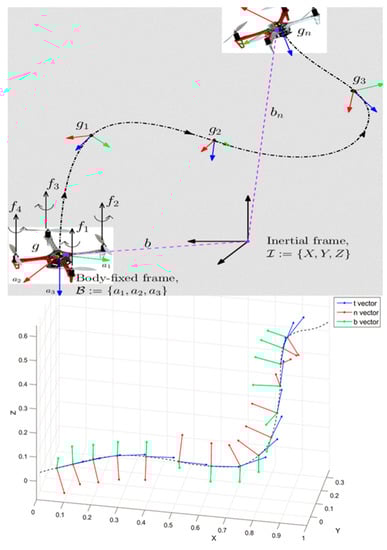When we consider a 3D trajectory of a mobile target, we can describe this curve by a time evolution of the local Frenet-Serret frame (local frame with tangent vector, normal vector and binormal vector) as illustrated in Figure 2. This frame evolution is described by the Frenet-Serret formula that gives the kinematic properties of the target moving along the continuous, differentiable curve in 3D Euclidean space ℝ3. More specifically, the formulas describe the derivatives of the so-called tangent, normal, and binormal unit vectors in terms of each other.