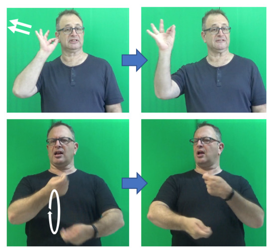- Smoothing of transition between signs—movement used for transition between the two signs in a compound is reduced spatially and temporally. The two signs are signed closer to each other in signing space, the transition is faster, and the movement between them is smoother.